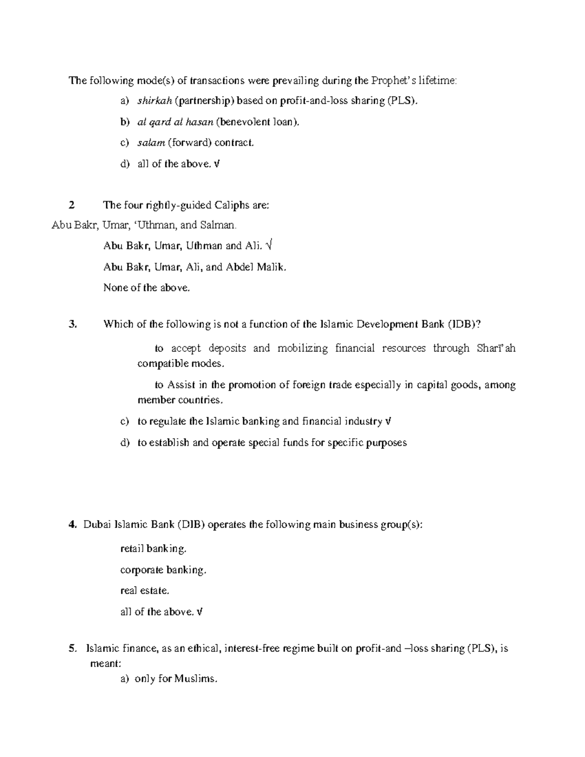 Telephone 44 20 8991 8235. The belief in sorcery. ISLAMIC BANKING FINANCE MULTIPLE CHOICE QUESTIONS MCQS.