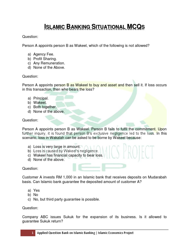 Islamic Banking Situational Mcqs Pdf Pdf Islamic Banking And Finance Banks